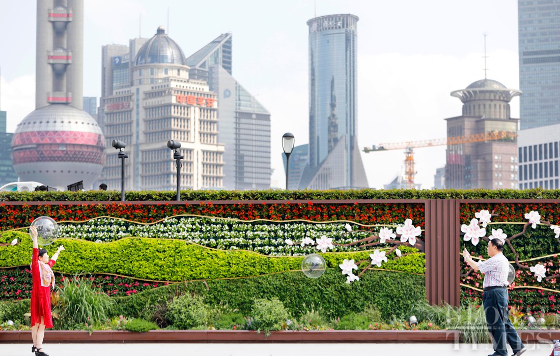 As the National Day holidays approach, there is a big wave of action on the landscape in Shanghai: Chinese national flags are hung along Nanjing Pedestrian Street; the flower beds are newly unveiled; the Bund area is decorated with a flower wall; the 112-year-old Waibaidu Bridge also renewed its lighting group... The entire city celebrates the 70th anniversary of the founding of the People's Republic of China in a hot and peaceful atmosphere. Photos: Yang Hui/GT