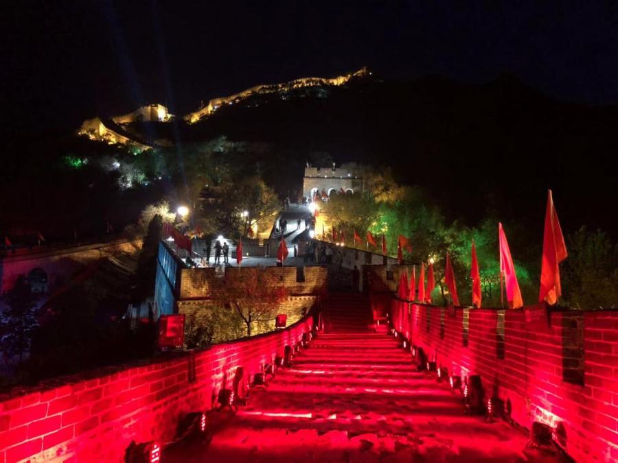 A light show in Beijing's northwestern Yanqing district kicked off on Saturday night along the Great Wall's Badaling section. (Photo provided to chinadaily.com.cn)
