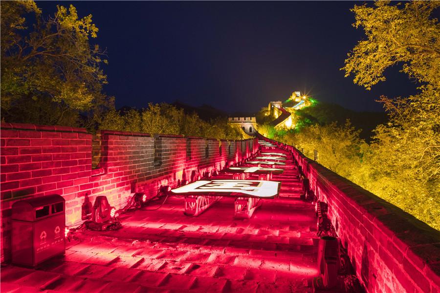 A light show in Beijing's northwestern Yanqing district kicked off on Saturday night along the Great Wall's Badaling section. (Photo provided to chinadaily.com.cn)
