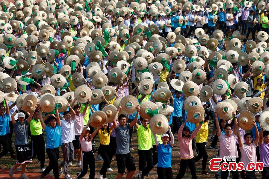 People train for a civilian procession, part of celebrations to mark the 70th anniversary of the founding of the People's Republic of China, at a university in Beijing, Sept. 29, 2019. Some 1,132 students and teachers from the University of Science and Technology Beijing will join a further 1,100 farmers from Beijing’s three districts - Changping, Fengtai and Fangshan - to form the No. 10 formation in the civilian procession. (Photo: China News Service/Fu Tian)