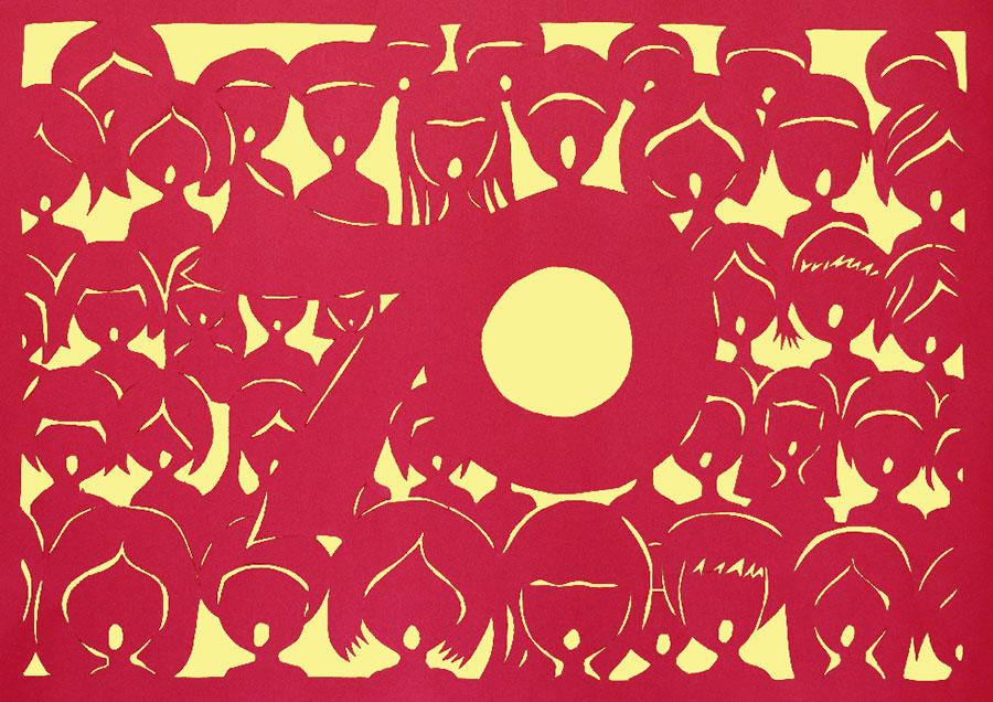 A piece of Chinese paper cut work is on display at an exhibition in Beijing. (Photo/chinadaily.com.cn)
