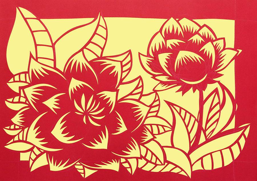 A piece of Chinese paper cut work is on display at an exhibition in Beijing. (Photo/chinadaily.com.cn)