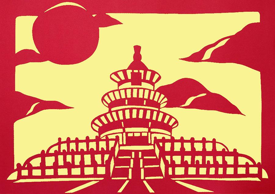 A piece of Chinese paper cut work is on display at an exhibition in Beijing. (Photo/chinadaily.com.cn)