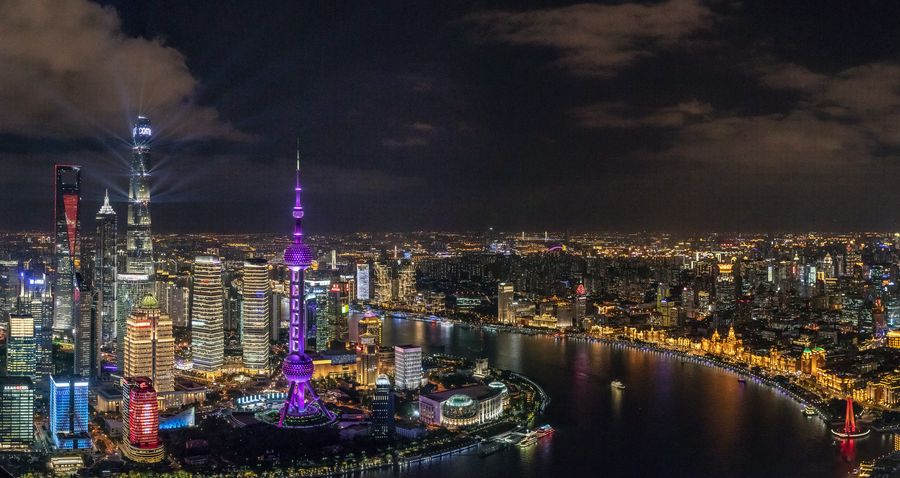 Photo taken on Nov. 1, 2018 shows the night view of Shanghai, east China. (Xinhua/Shen Bohan)