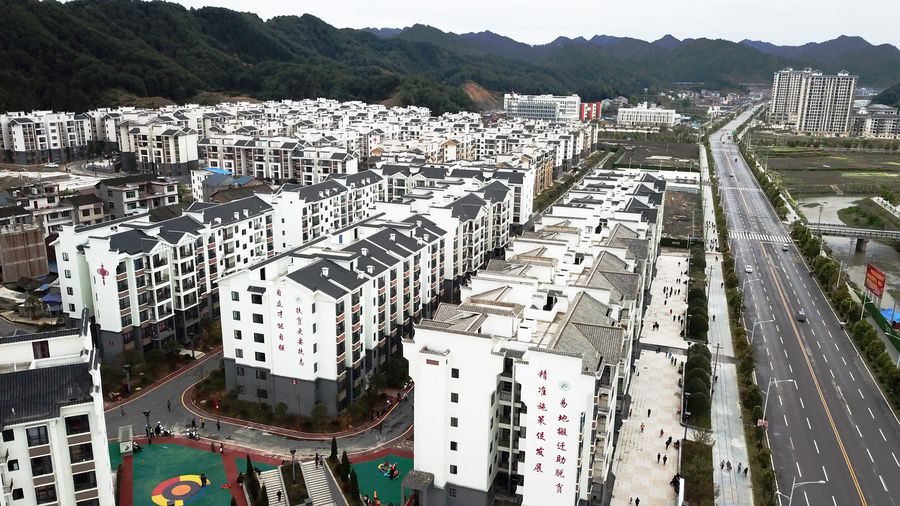 Aerial photo taken on April 11, 2019 shows a settlement for poverty relief relocation in Sansui County, southwest China's Guizhou Province. (Xinhua/Yang Wenbin)