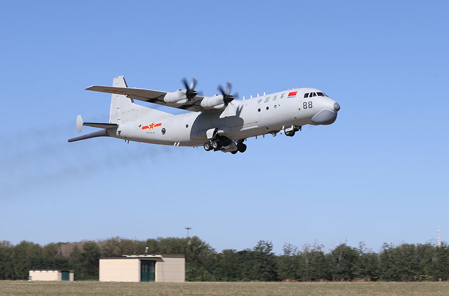 A Y-8 maritime patrol aircraft takes off last month. [Photo by Chen Zebing/China Daily]