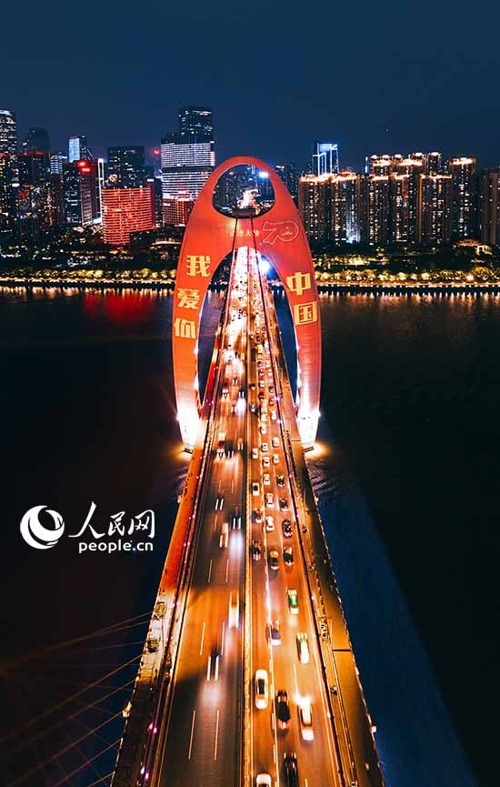 A night view of the Liede Bridge in the Haizhu District, Guangzhou (People's Daily Online/Qiu Huo)