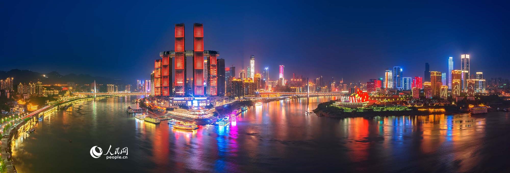 The night view of the Chaotianmen Dock, Chongqing (People's Daily Online/Tang Anbing)