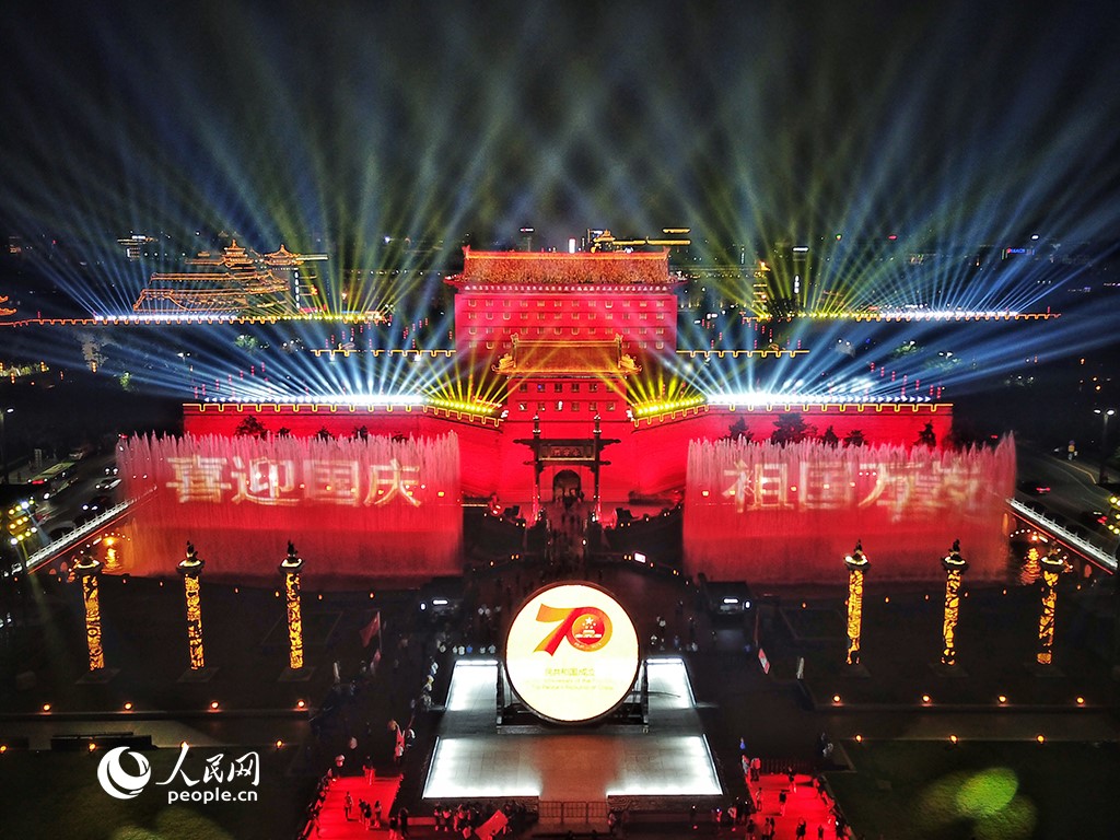 A light show in the Datang Everbright City of Xi'an, Shaanxi province (People's Daily Online/Zhang Danhua)