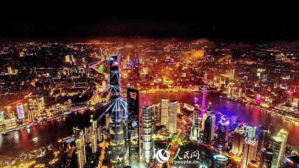 A light show in the Lujiazui financial district, Shanghai (People's Daily Online/Huang Weiguo)