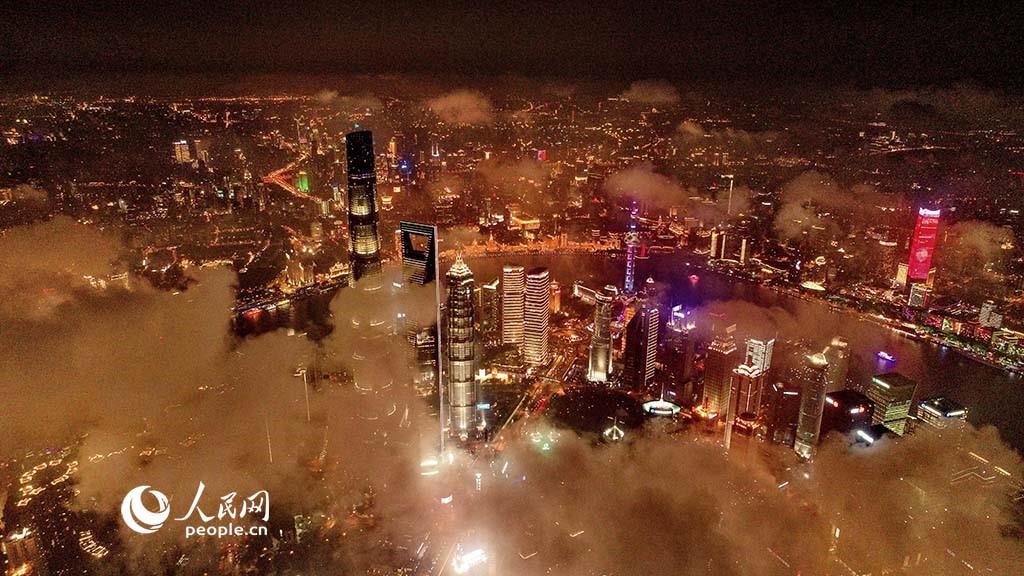 A light show in the Lujiazui financial district, Shanghai (People's Daily Online/Huang Weiguo)