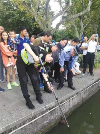 A police officer helped visitors fish up six phones by using his self-made tool during the national holiday in Hangzhou. His behavior attracted many people’s attentions, and suddenly become popular online.