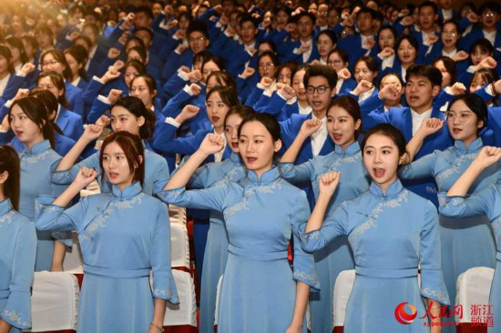 On Oct. 13, the sixth World Internet Conference volunteers marching ceremony was held in Tongxiang, Zhejiang Province. During the conference, 1,000 volunteers will be divided into 11 groups and will be delegated different responsibilities. What’s more, they will receive general education training and go to Wuzhen for intensive practical training exercises, which will lay a solid foundation for the volunteer service of the conference.(Photo/People's Daily Online)