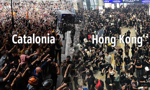 Some mainstream Western media have kept a low key in covering the latest protests in Catalonia while downplaying its connection with Hong Kong or the slogan that local protesters are attempting to turn Catalonia into another Hong Kong.