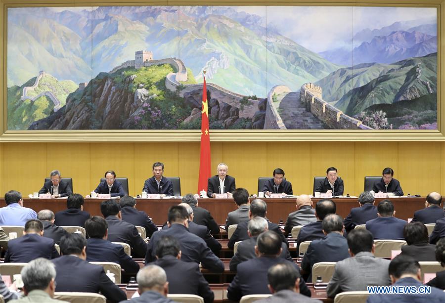 Chinese Vice Premier Liu He, also a member of the Political Bureau of the Communist Party of China (CPC) Central Committee, speaks at a teleconference on paying off arrears to private, small and medium-sized enterprises in Beijing, capital of China, Oct. 21, 2019. (Xinhua/Ding Haitao)