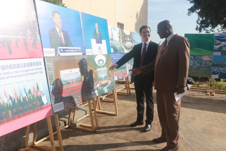 The Chinese Ambassador to Sierra Leone, Hu Zhangliang, and the Sierra Leone Minister of Higher and Technical Education Professor Aiah Gbakima attend an International Photo Exhibition Celebrating the 70th Anniversary of the Founding of the People's Republic of China