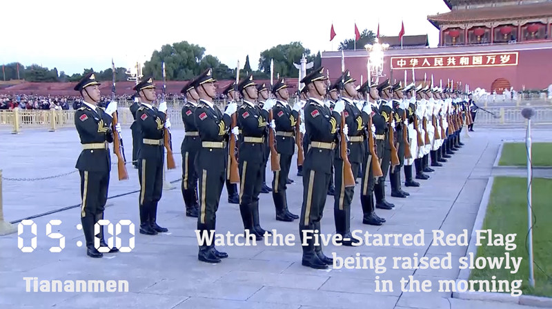 Watch the Five-Starred Red Flag being raised slowly in the morning.