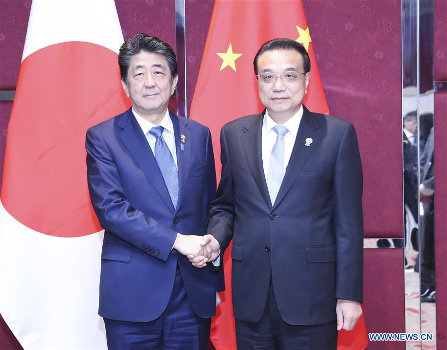 Li made the remarks in a meeting in Bangkok with Japanese Prime Minister Shinzo Abe on the sidelines of a series of leaders' meetings on East Asian cooperation.