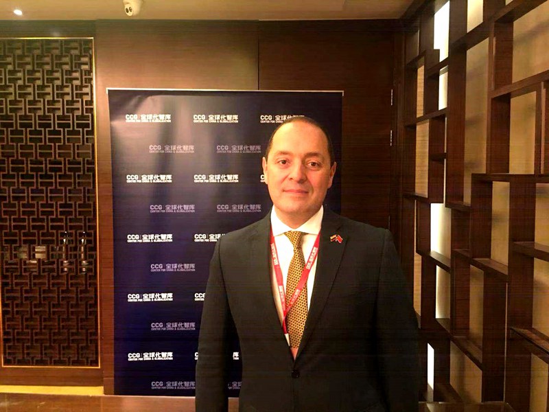 Luis Diego Monsalve, the Ambassador of Colombia to China, poses for a photo during an interview with People's Daily Online in Beijing, Oct. 3, 2019.(Photo by Xian Jiangnan/People's Daily Online)