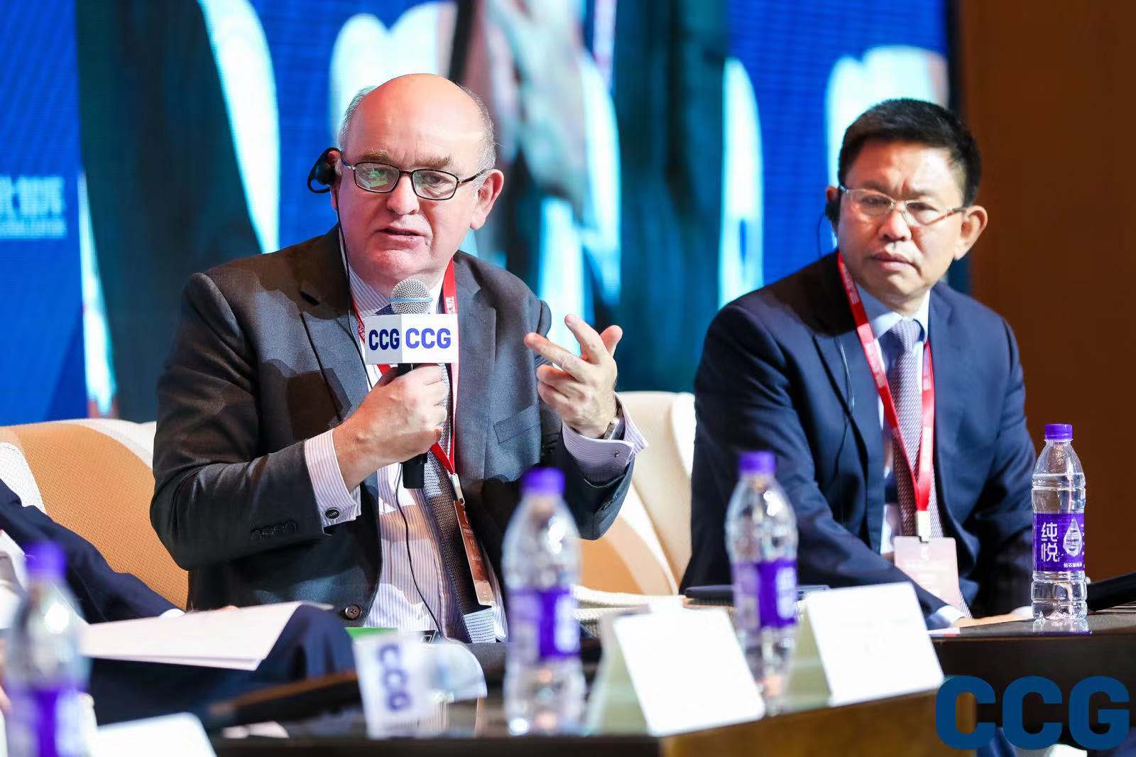 Eoin O'Leary (L), Irish Ambassador to China, speaks at the 6th China Inbound-Outbound Forum 2019 held in Beijing on Nov. 3, 2019. (Photo provided by CCG)