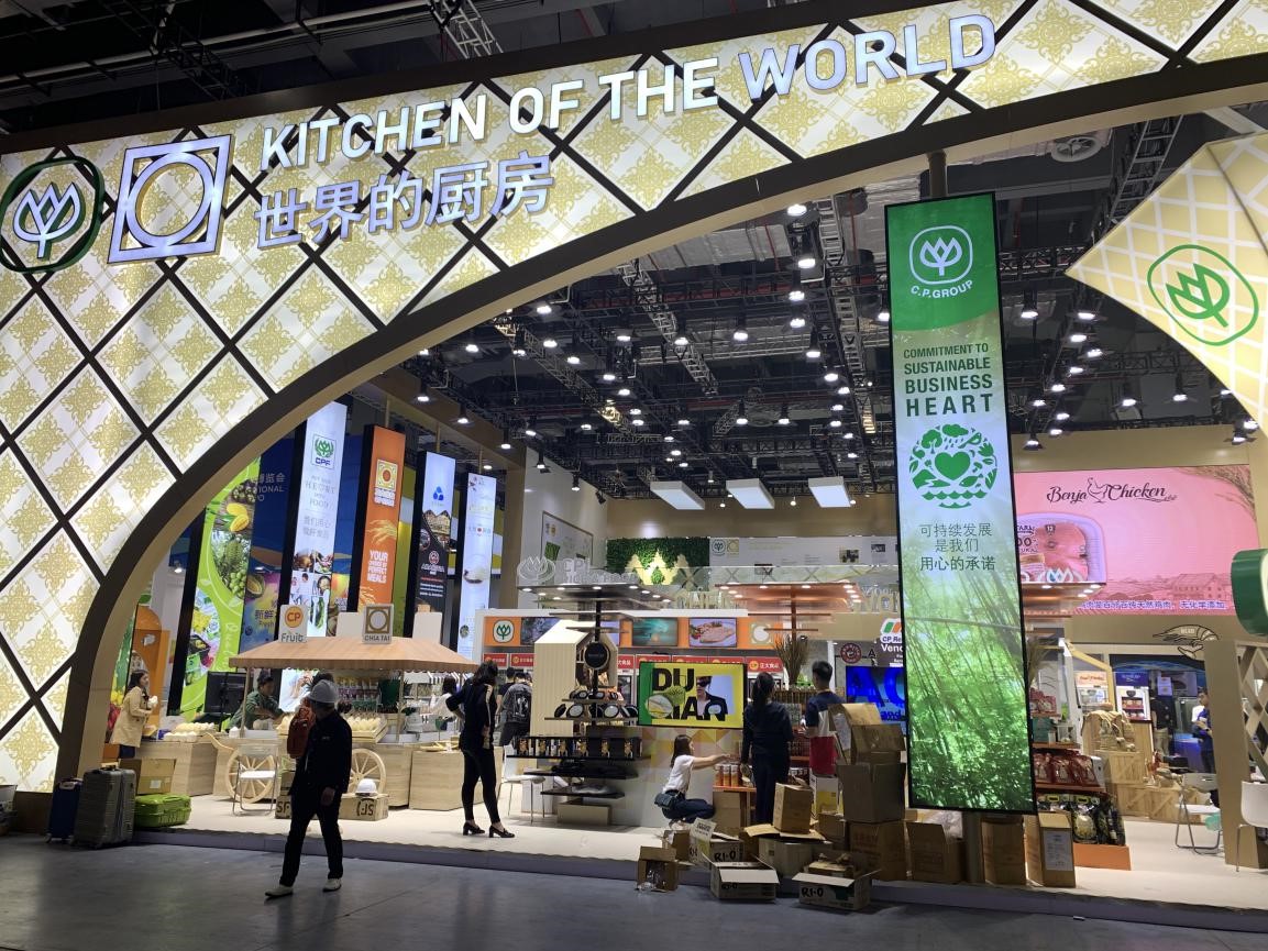 The booth of Charoen Pokphand Group at the exhibition area of food and agricultural products of the second CIIE. (Photo by Wang Hui from People’s Daily)