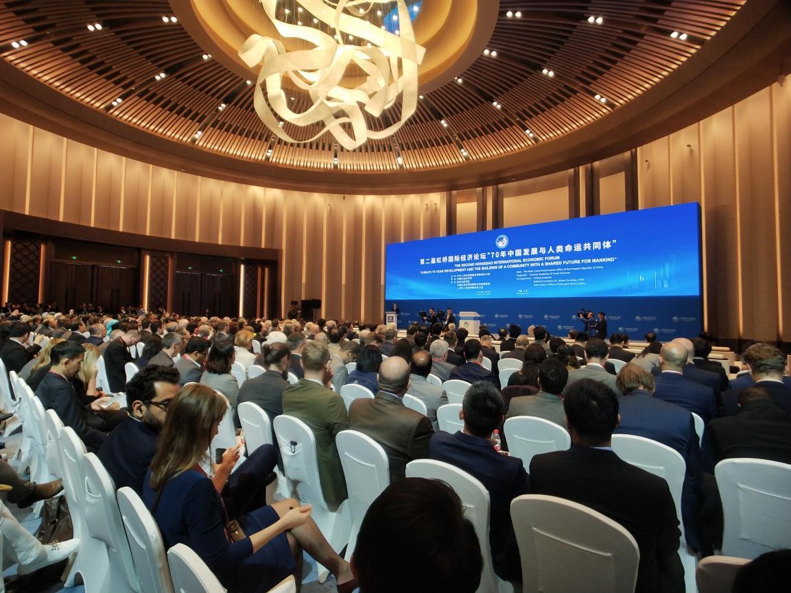 Photo taken on Nov. 5, 2019 shows the parallel session “China’s 70-Year Development and the Building of a Community with a Shared Future for Mankind” of the second Hongqiao International Economic Forum, an important part of the CIIE. (Photo by Ji Peijuan from People’s Daily)