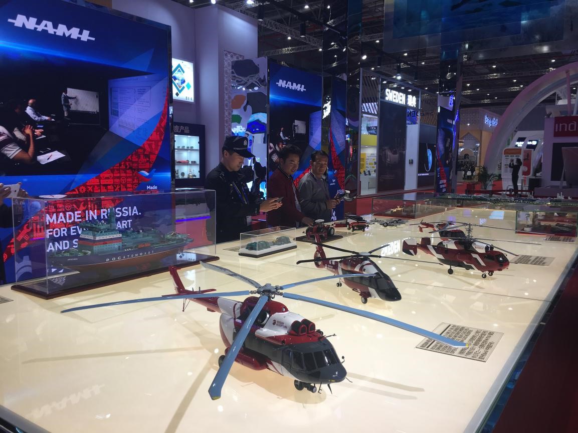 Visitors at the second CIIE look at the exhibits displayed in the Russia Pavilion. (Photo by Qu Song from People’s Daily)