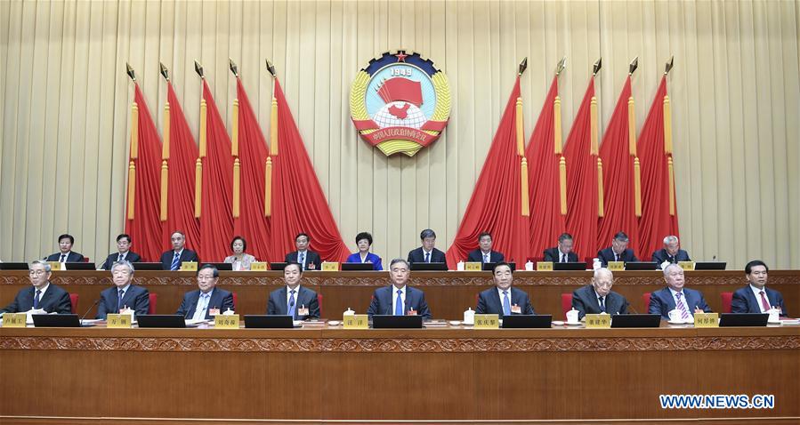 Wang Yang, a member of the Standing Committee of the Political Bureau of the Communist Party of China Central Committee and chairman of the National Committee of the Chinese People's Political Consultative Conference (CPPCC), presides over the closing meeting of the ninth meeting of the Standing Committee of the 13th CPPCC National Committee in Beijing, capital of China, Nov. 7, 2019. (Xinhua/Zhang Ling)