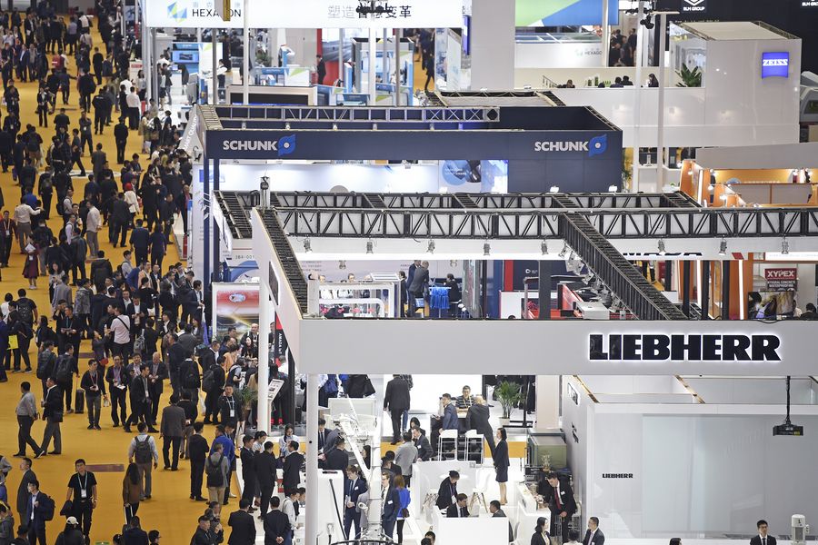 People visit the Equipment exhibition area during the second China International Import Expo in Shanghai, east China, Nov. 7, 2019. (Xinhua/Wang Peng)
