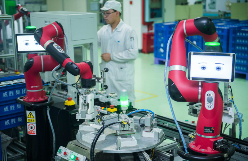 In the workshop of a Changsha-based manufacturer of electronic smart meters, a few intelligent robots adeptly wave their mechanical arms to sort through products and assemble electrical parts.
