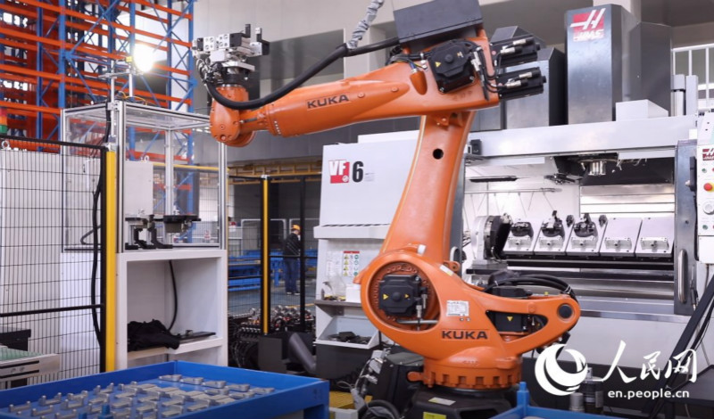 An intelligent robot on the production line of Truking Technology Ltd. (Photo: Yuan Meng/People's Daily Online)