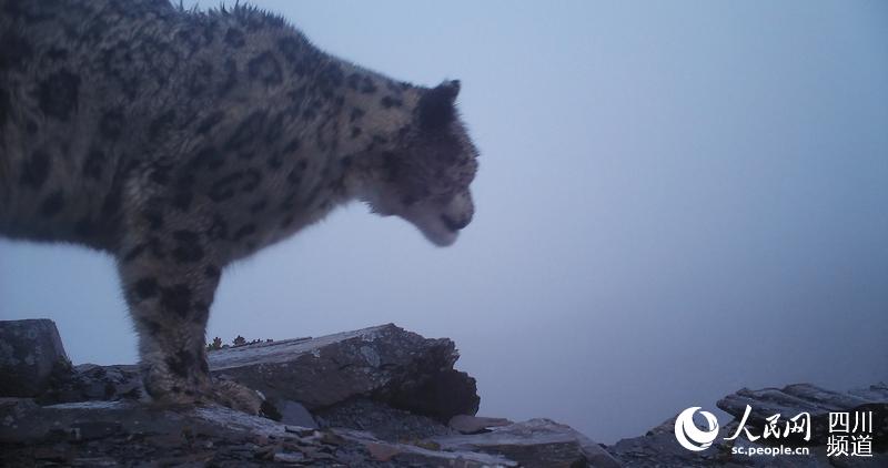 An infrared camera recently spotted a male snow leopard staking claim to its territory on Yaomei Peak, Mount Siguniang, in southwest China’s Sichuan province.