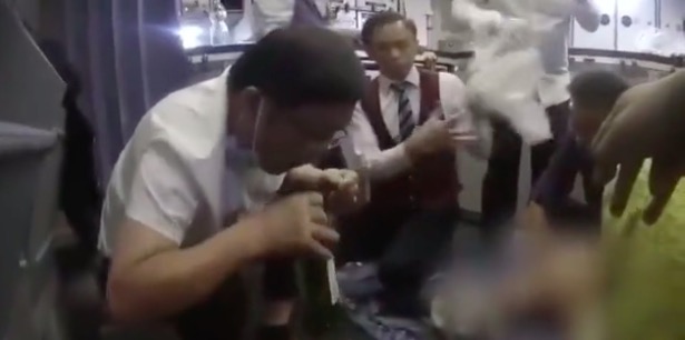 A passenger in his 70s had difficulty urinating on China Southern Airlines flight CZ399, from New York to Guangzhou on November 19. Two doctors, Xiao Zhanxiang from Hainan Central Hospital and Zhang Hong from The First Affiliated Hospital of Jinan University, helped him.