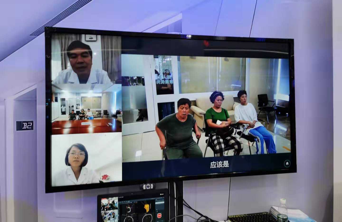 A demo shows doctors diagnosing patients via HD video conference. (People's Daily Online/He Zhuoyan)