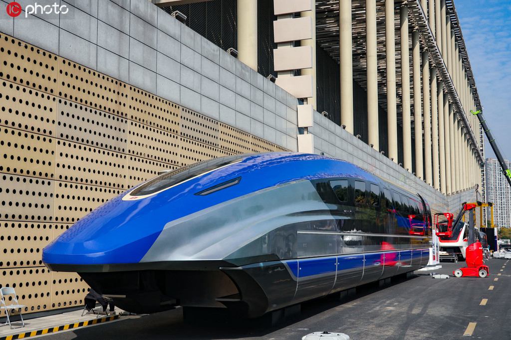 Four CRRC rail transit vehicles were displayed at the Hangzhou International Expo Center on Dec. 4, 2019. Among them, the 600 km/h high-speed maglev sample vehicle from CRRC Sifang, "High-Speed Blue", made a big impression.