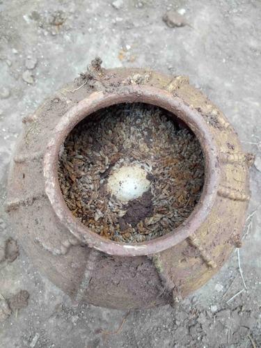 The eggs with intact shells were buried in the rice within the jar. Their number was yet to be verified, researchers said.
