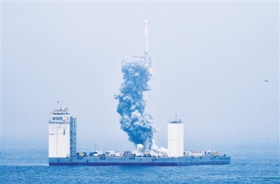 A Long March 11 solid-propellant carrier rocket blasted off at 12:06 pm on June 5 from a mobile launch platform — a modified submersible craft — in the Yellow Sea off the eastern province of Shandong and then sent seven satellites into orbit about 600 kilometers above the Earth.