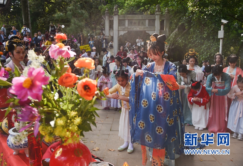 Women in hanfu worship the flower goddess in Fuzhou, southeast China’s Fujian province. (Photo/Xinhua)