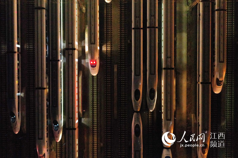 High-speed trains wait for departure at dawn. (Photo/Shi Yu)