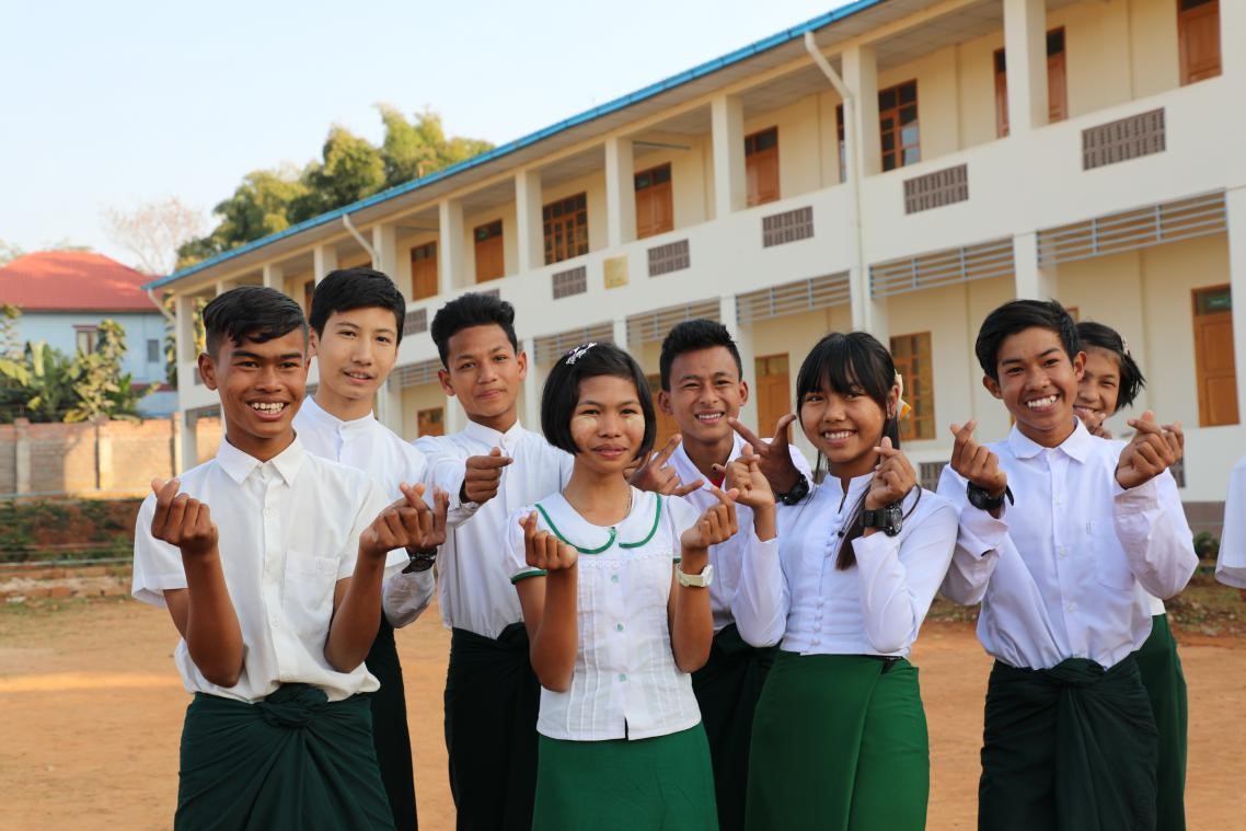 Local students of a school built with the assistance of the China-Myanmar oil and gas pipeline project express their thanks to Chinese companies on Jan.10, 2020. (Photo by Sun Guangyong from People’s Daily)