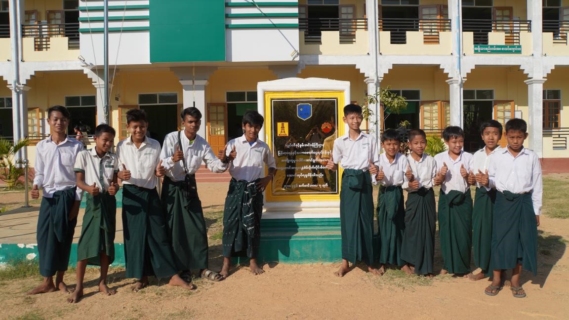 Students pose for a picture in front of a teaching building at a high school in Nay Pyi Taw, Myanmar donated by the Sino-Myanmar pipelines project, to extend their gratefulness to the Chinese enterprises that offered help. Photo by Ji Peijuan, People's Daily