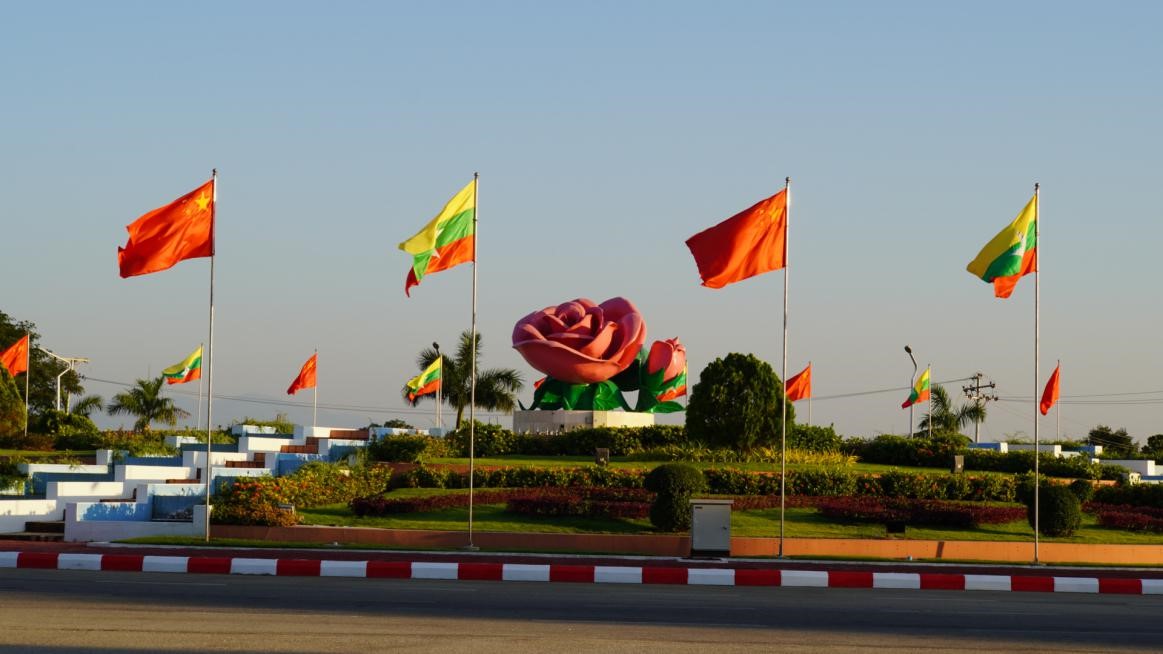National flags of China and Myanmar fly by a street in Myanmar before Chinese President Xi Jinping's state visit to the country. Photo by Ji Peijuan, People's Daily