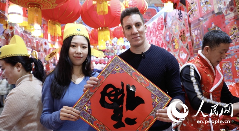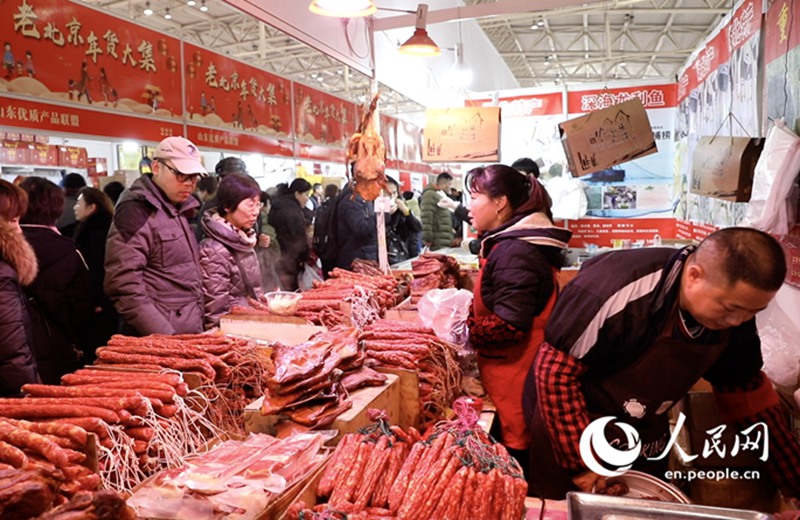People select food for the upcoming Spring Festival at the National Agricultural Exhibition Center in Beijing, on Jan 10, 2020. [Photo by Liu Ning/People′s Daily Online]