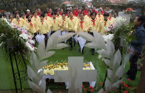 People pay tribute to organ donors at a public cemetery in Shanghai. (Photo by Gao Erqiang/China Daily)