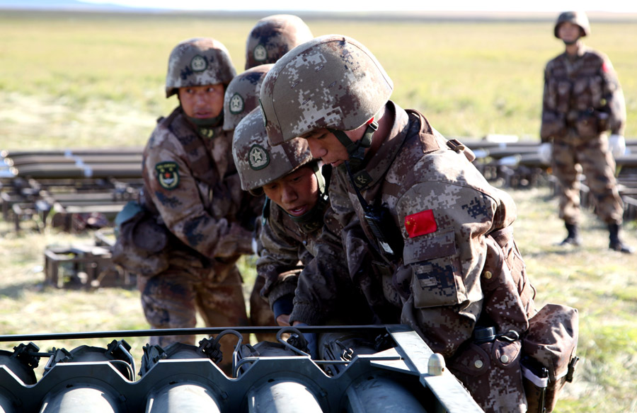 Soldiers from the People's Liberation Army's Northern Theater Command prepare for the military drill "Vostok-2018"in Russia's Trans-Baikal region, Sept 7, 2018. [Photo by PAN MENGQI/CHINA DAILY]