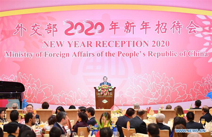 Chinese State Councilor and Foreign Minister Wang Yi addresses the 2020 new year reception of Chinese Foreign Ministry at the Diaoyutai State Guesthouse in Beijing, capital of China, Jan. 20, 2020. (Xinhua/Li Xiang)