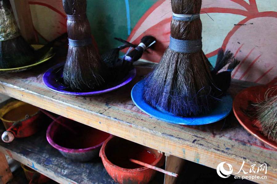 Some of the tools used to create the Yangjiabu woodblock New Year paintings in Yang's workshop in Yangjiabu Village of Hanting District in Weifang, east China's Shandong Province, Jan. 20, 2020. (Photo/Liu Jing)