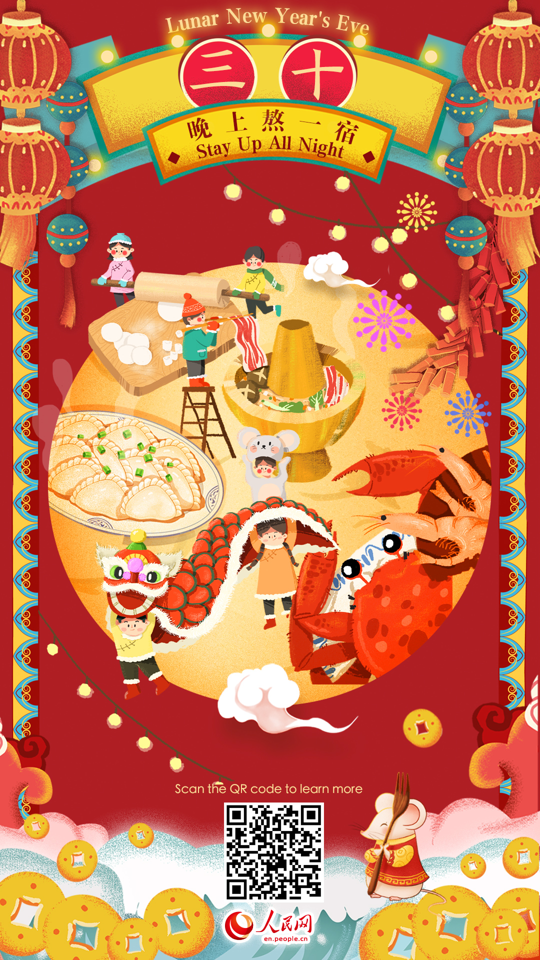 According to folklore, the reason why people stay up all night on Chinese New Year’s Eve is that they have to try to drive away a monster called Nian (year). The monster was believed to hurt people in villages during the eve of the new year.