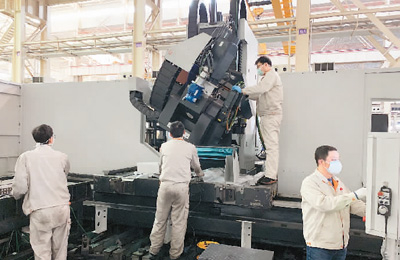 Workers at Shenyang Machine Tools Co., Ltd. affiliated to China General Technology Group test production lines for national key projects. (Photo by Jiang Lin)