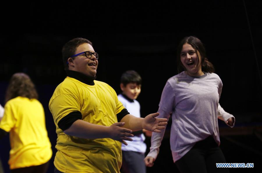RAMALLAH/BIRZEIT, Feb. 20 (Xinhua) -- In a unique experimental show, young students from the Palestinian Circus School performed together with peers with intellectual disability, in the town of Birzeit in west of Ramallah city on Thursday evening.